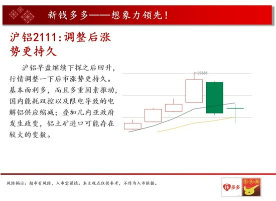 操作建议:沪铝早盘继续下探之后回升,行情调整一下后市涨势更持久。