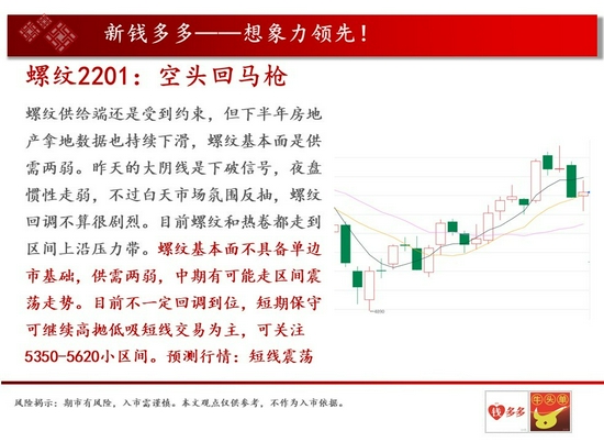 操作建议:螺纹基本面不具备单边市基础,供需两弱,中期有可能走区间震荡走势。目前不一定回调到位,短期保守可继续高抛低吸短线交易为主,可关注5350-5620小区间。预测行情:短线震荡。
