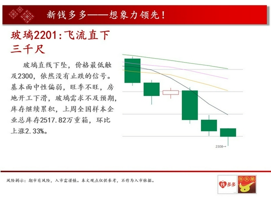 操作建议:玻璃直线下坠,价格最低触及2300,依然没有止跌的信号。
