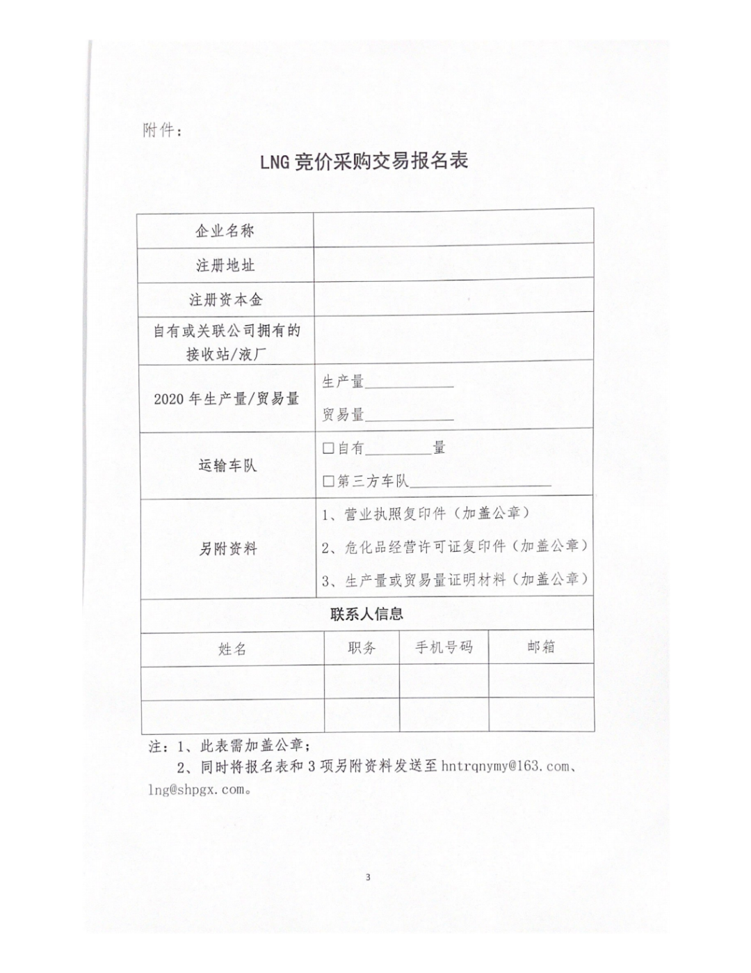开展冬季储备调峰LNG竞价采购交易的报名公告