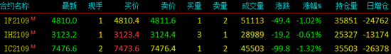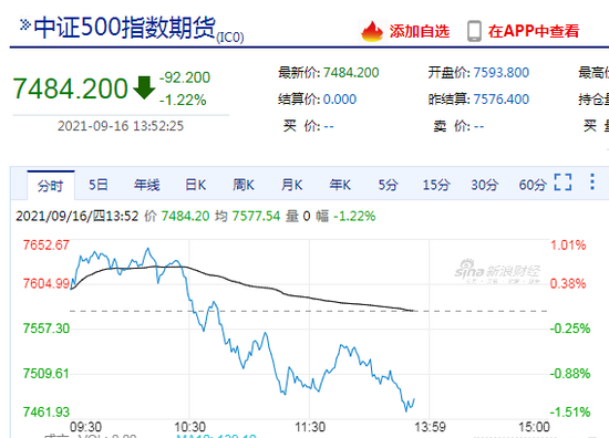 快讯:9月16日下午,股指期货继续下挫,IC、IF主力合约跌超1%。
