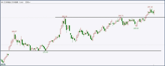 【分析】国内商品指数正式站上前高200大关,步入多头结构。关注多头结构的持续性。后市如遇调整,200关口作为下方支撑位参考。