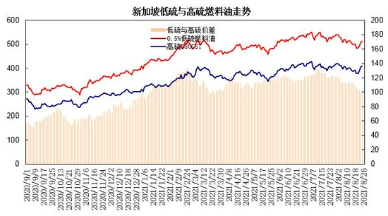 图16:新加坡低硫与高硫燃料油走势