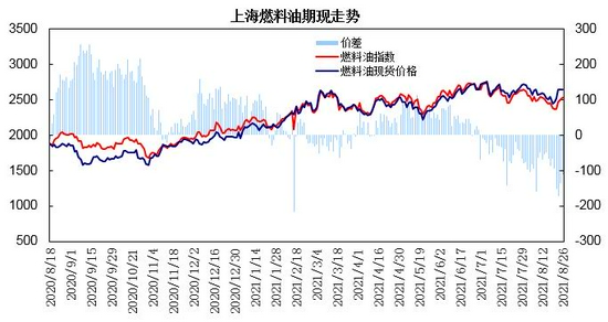 图3:上海燃料油期现走势