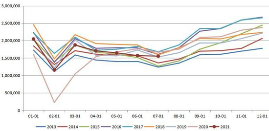 今年前七月,ANRPC累计产量同比增加6.55%,但仍然低于2017至2019年的水平。