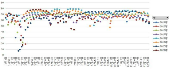 国内生产正常,但期货价位较低,缺少交货动力,交易所仓单暂时仍未增长,类似2020年。目前交易所仓单量处于2014年以来的最低位附近。
