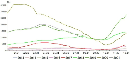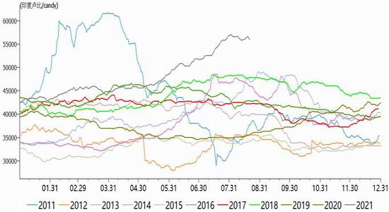 印度宏观方面政府大放水,对其国内的大宗商品都有影响。棉花基本面,其国内期末库存连续下降,库存消费比也连续下降,而印度国内的消费预计随着印度疫情好转订单预计也将大量回流,消费端有明显的利好。此外,国际棉花价格大幅上涨,无论是美国还是中国市场棉花价格都持续走高。综上多因素影响,印度棉花价格也创了自2011年以来的新高。