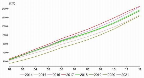 图20:限额以上服装鞋帽、针纺织品类累计零售额