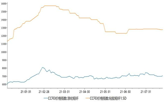 棉花的短纤替代品的价格近期基本上维持一个震荡走势,而下游纱线替代品走势甚至出现了明显的疲软态势,可见终端下游的消费支撑作用也不是那么强。