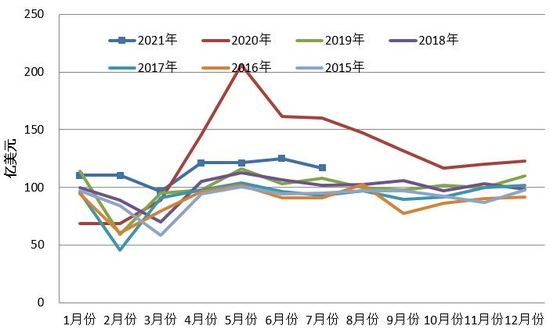 出口:越南、孟加拉国以及印尼等东南亚国家疫情再次爆发导致部分东南亚的纺织品服装订单都回流到了中国,2021年我国的纺织品服装出口数据表现亮眼。据海关最新数据统计:7月我国纺织服装出口282.73亿美元,同比下降9.7%,其中纺织品出口116.98亿美元,同比下降26.8%,服装出口165.75亿美元,同比增长8.2%。2021年1-7月,纺织服装累计出口1686.4亿美元,同比增长7.8%,其中纺织品出口803亿美元,同比下降10.9%,服装出口883.4亿美元,同比增长33%。