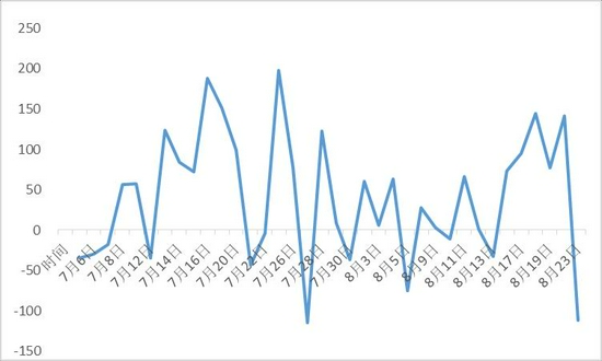 仓单方面,截至8月25日,郑商所期货仓单已生成9412张,有效预报仓单量1037张,合计10449张,按照每张仓单40吨计算,合计仓单棉量为41.8万吨,较7月减少19万吨。近期仓单流出速度加快,也能反映出市场对棉花的需求情况仍不错。