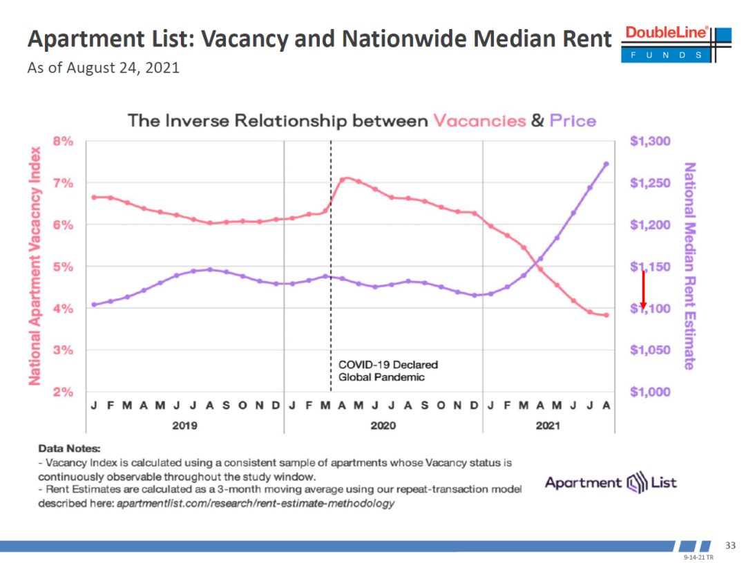 美国公寓空置率不断下降而租金上涨。占据CPI比重30%的Shelter部分将会让CPI持续高企。