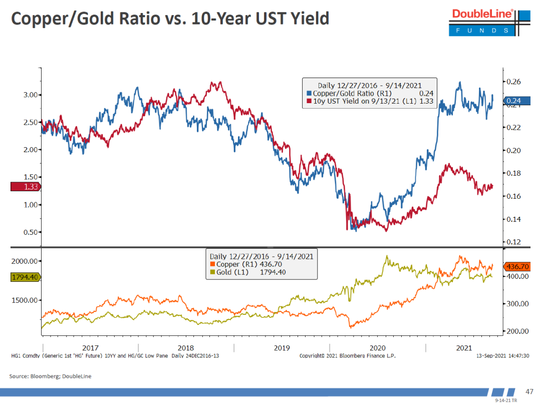 铜金比和10年期国债有巨大差异,按照原来的关系国债利率应该在3%。这次会议Gundlach没有表达对美债清晰的看法。