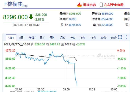 9月17日早盘,油脂商品跳水,棕榈油主力合约跌2.67%,现报8296元/吨。豆油、菜油主力合约跌超1%。