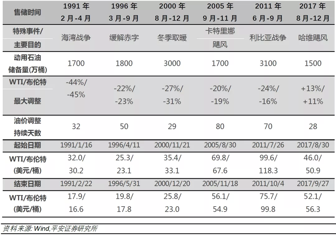 第二,如果抛储规模较大(如2000年和2011年均超过3000万桶)或者抛售节奏较快(如1991年仅耗时2个月),则相应油价调整幅度也越大。