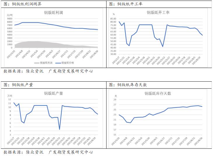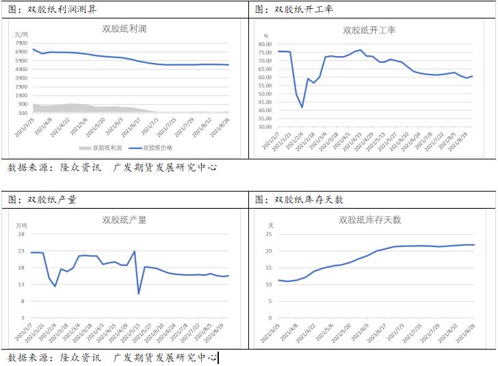 除了港口库存保持较高水平外,文化用纸,包装用纸和生活用纸的成品库存也处于较高的水平。这对于后期行情的发展是较为不利的。整体库存水平结构适合做空。尤其是远月合约承压更为明显。