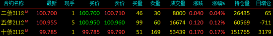2021年9月17日,国债期货各品种主力合约全线上涨。截至下午收盘,十年期主力合约涨0.17%;五年期主力合约涨0.12%;二年期主力涨0.04%。