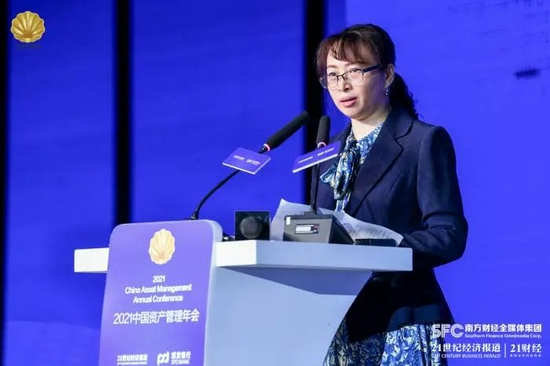 中国证券投资基金业协会党委委员、副秘书长黄丽萍发表《资产管理迈上高质量发展新阶段》的讲话。