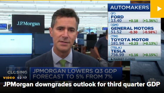 摩根大通将第三季度美国经济增长率预估从7%下调至5%,理由是需求增长势头减弱及库存重建速度放缓。