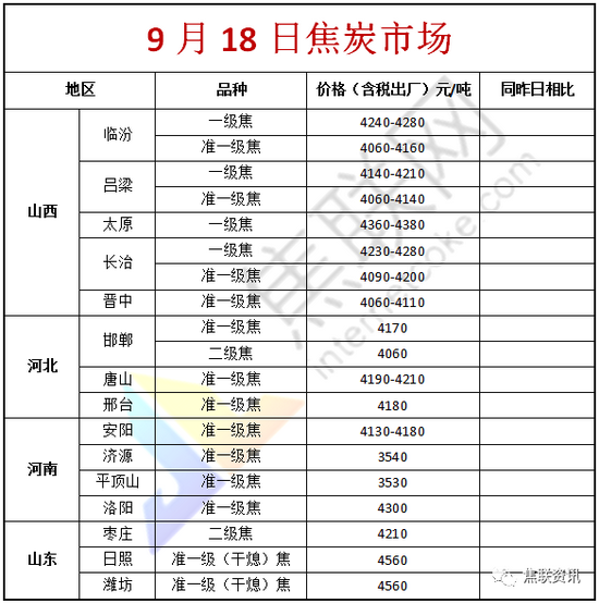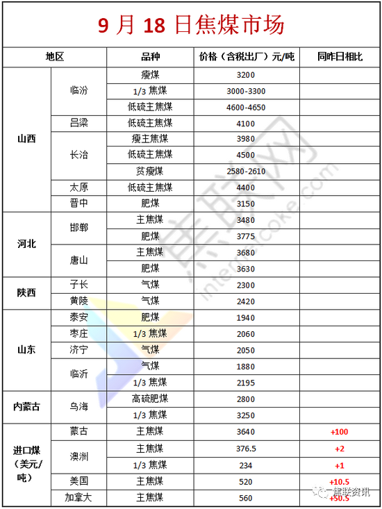 原标题:【焦联资讯】9月18日焦企看涨心态下滑 焦煤调整节奏放缓 市场观望情绪较浓