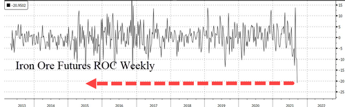 铁矿石期货本周跌逾22%,自今年5月触顶以来已经跌价了逾一半,金融博客Zerohedge称这是该期货有史以来最差的单周表现。