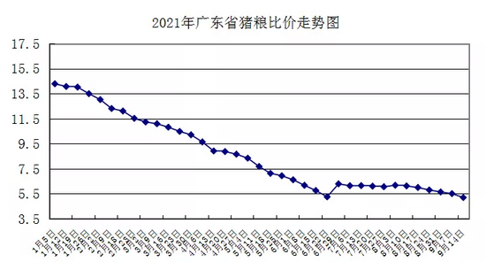 本周(9月14日,下同),随着生猪产能的持续扩张,我省生猪市场各环节价格延续弱势。与上周(9月7日,下同)相比,生猪出场价、总肉批发价和猪肉零售价全线下行,且均创下了今年以来新低。受此影响,猪粮比价持续下探,本周跌破5.5:1,在正常区域(5.5:1~8.5:1)运行11周后,降至广东省发展改革委、财政厅、农业厅、商务厅2016年第14号通告发布《广东省缓解生猪市场价格周期性波动调控预案实施细则》设定的轻度下跌三级预警区间(5:1~5.5:1)运行。建议养殖场(户)科学安排生产经营决策,将生猪产能保持在合理水平。