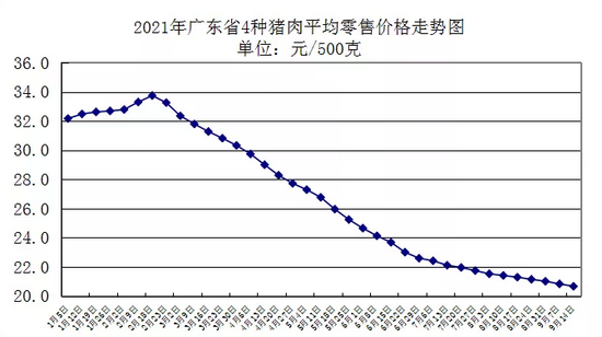 今年以来,我省生猪出场价总体单边下行,尽管6月下旬曾一度反弹,随后跌势有所放缓,但进入9月份又开始加速向下。本周,全省生猪出场均价为每500克7.32元,比上周下降6.39%,降幅较上周的2.62%明显扩大;价格跌破前期低点(6月22日的7.5元),再创今年以来新低。受此影响,总肉批发价同样降至年内低位,本周均价为每500克10.46元,较上周下降4.12%。