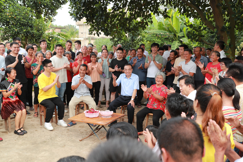 在陆川县东西村,李克强走进甘蔗田与蔗农交谈。他说,蔗糖是食品等产业重要原料,全国每三勺糖就有两勺来自广西,你们辛苦劳动为千家万户送去了甜。国家将在甘蔗良种培育、增强糖业抗风险能力上加大支持。李克强与村民围坐拉家常。有大学毕业生说,在附近创业办企业带动了300人就业,李克强称赞这让群众能就近打工挣钱,又照顾老人孩子。针对乡亲们的期盼,李克强说,现在生活好起来,有很多新需求,要问政于民,尽力而为、量力而行,把群众盼望的事情办好。
