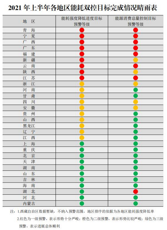 近日,国家发改委在例行新闻发布会上对9个省区“能耗双控”亮起了红灯。青海、宁夏、广西、广东、福建、新疆、云南、陕西、江苏9地,因上半年能耗强度同比不降反升,被直接点名。此外,还有10个省份的能耗强度降低率未达到进度要求,全国节能形势十分严峻。