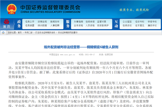 原标题:安徽首例场外配资刑事案披露!涉案达4300万元,6人被判有期徒刑!最高检驻证监会检察室成立,严打证券违法活动加力