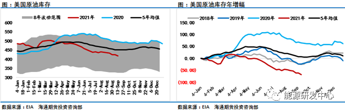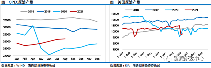 IEA报告同样判断飓风导致美油的减产抵消了欧佩克的增产。北京时间周二下午,IEA最新月报公布。IEA宣布预计2021年全球石油需求将增加520万桶/日,不过这比8月判断下调了10.5万桶/日,这也是IEA第二个月下调了对2021年需求预期目标,在8月IEA已经将2021年需求恢复预期从585万桶/日下调到了530万桶/日,维持2022年全球石油需求将增加320万桶/日的预期,显然IEA对全球原油需求展望相对自身作为卖方的OPEC而言更为客观务实,早些时间EIA在短期能源展望中同样下调了2021年全球原油需求恢复37万桶/日,到496万桶/日。今年几轮疫情的发展都是超预期的,这也限制了原油需求的恢复进程,不过随着疫情局势得到缓解,几大机构也对10月原油需求的反弹抱有较高期待。