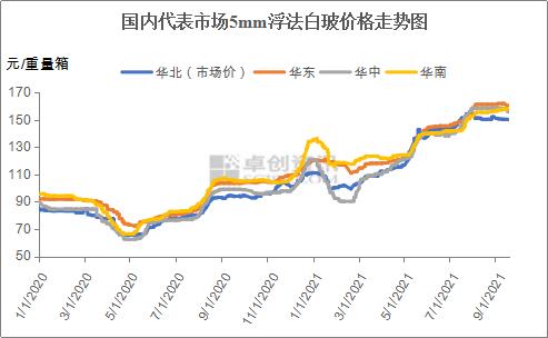 供应端看,据卓创资讯监测数据,8月份月度实际平均在产产能为175057吨/日,8月份国内浮法玻璃产量约9675万重量箱,同比增加约12.8%。9月份2条产线先后冷修或保窑,未来仍有4-5条线存点火计划,但点火多集中于10月份之后,部分产能投放将出现在年底,叠加3条左右产线未来存冷修预期。因此卓创资讯认为8月份产量供应基本达到年内峰值,未来变化将相对有限。