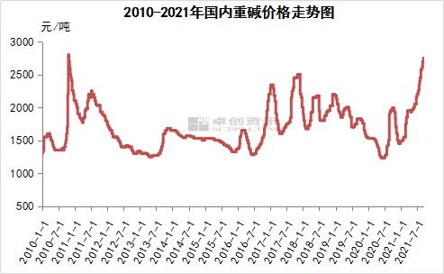 纯碱供需紧平衡,现货价格不断上涨。中上旬国内轻碱主流出厂价格在2350-2500元/吨,重碱主流终端价格在2700-2800元/吨。纯碱厂家订单充足,部分厂家已经接单至10月份。因华东地区纯碱厂家大范围减量,纯碱货源供应紧张局面延续,目前多数纯碱厂家封单不接,部分小单货源成交价格较高。纯碱价格已经处于历史高位,但因供应不足,纯碱厂家库存仍呈下降态势,9月16日国内纯碱厂家整体库存在32万吨左右(含部分厂家港口及外库库存),处于历史同时较低水平。