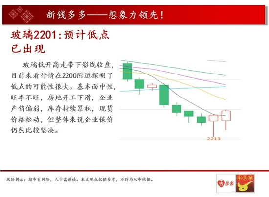操作建议:玻璃低开高走带下影线收盘,目前来看行情在2200附近探明了低点的可能性很大。