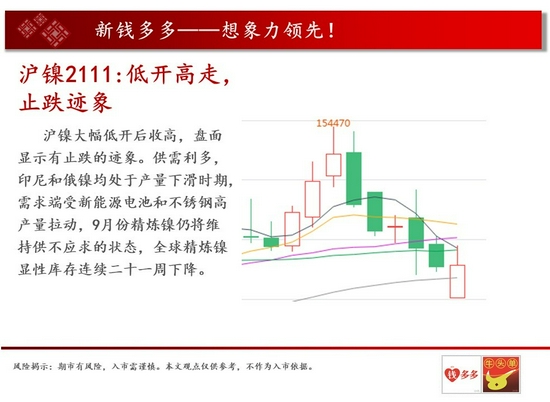 操作建议:沪镍大幅低开后收高,盘面显示有止跌的迹象。