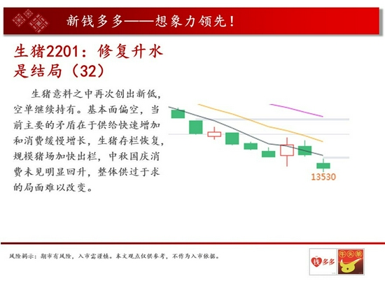 基本面概述:基本面偏空,当前主要的矛盾在于供给快速增加和消费缓慢增长,生猪存栏恢复,规模猪场加快出栏,中秋国庆消费未见明显回升,整体供过于求的局面难以改变。