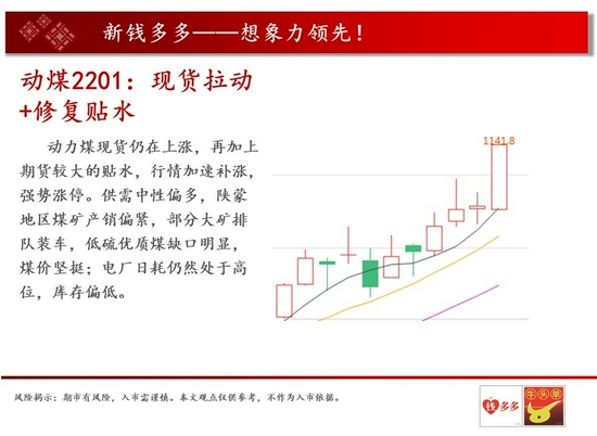 操作建议:动力煤现货仍在上涨,再加上期货较大的贴水,行情加速补涨,强势涨停。