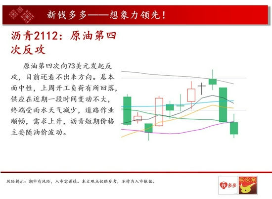 基本面概述:基本面中性,上周开工负荷有所回落,供应在近期一段时间变动不大,终端受雨水天气减少,道路作业顺畅,需求上升,沥青短期价格主要随油价波动。