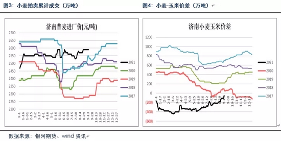 小麦价格自8月以来持续走高,主要还是因为下半年是面粉需求旺季,小麦价格节节走高,而玉米价格持续回落,玉米小麦价差继续缩小,目前华北地区玉米小麦价差在50-160元/吨,部分区域玉米价格已经低于小麦。预计随着新玉米上市,玉米小麦价差将继续缩小。随着玉米小麦价差逐步回归合理区间,后期市场或将减少小麦替代用粮,重新增加玉米用量。