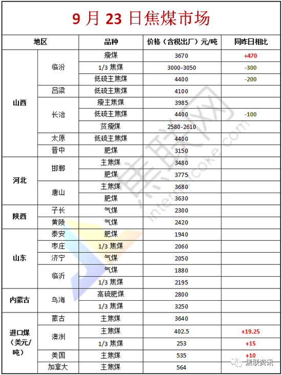 原标题:【焦联资讯】9月23日受粗钢压减影响焦炭需求下滑 部分前期高位煤种价格回落200-300元/吨