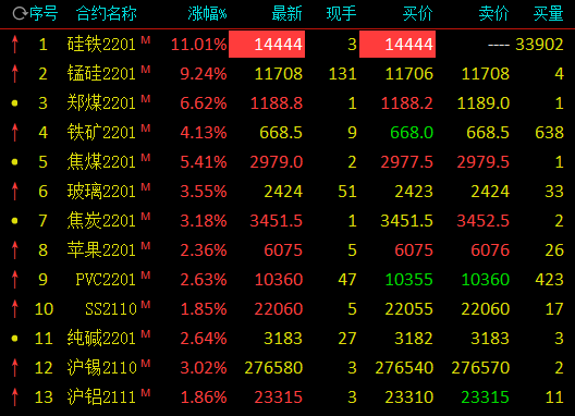 9月23日,国内期市开盘,硅铁主力合约涨停,涨幅11.01%,锰硅主力合约涨超9%。