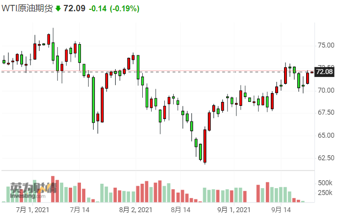 截止发稿,WTI原油期货交投在72美元/桶左右。