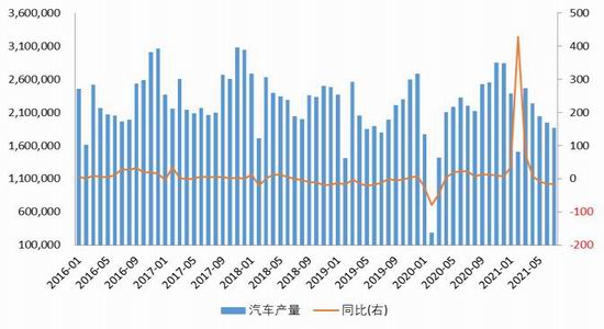 从汽车产量来看,7月份汽车产量为186.3万辆,同比增长-15.5%。受去年下半年汽车行业的高基数效应影响,7月汽车产销同比继续呈回落态势,并且是连续第三个月下滑。除基数原因造成的同比负增长以外,芯片供应链问题以及国内疫情散发也对终端需求产生影响。尽管当前Delta变异病毒令国内疫情形势再度严峻,但随着国内防疫政策的持续推进,我们预计9月国内的疫情形势就将出现明显好转。同时三季度汽车芯片供应问题也将边际缓解,四季度有望出现明显改善。与之对应的汽车产销情况也将随之修复,车用锌消费也将迎来增长。