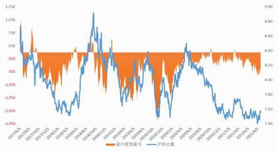 图11:锌沪伦比值及进口盈亏