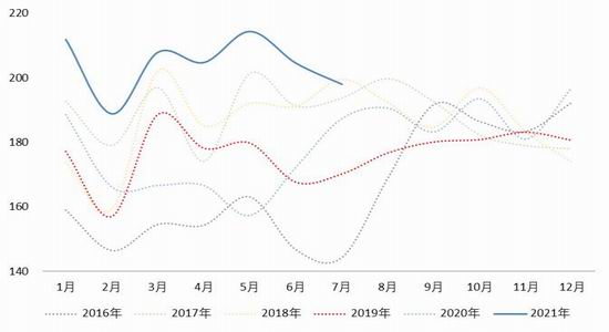 总体来看,7月受国内多点散发的变异病毒疫情影响,叠加此前暴雨造成的地区内涝灾害,国内物流运输以及经济活动出现下降。同时在夏季淡季因素的影响下,部分终端消费也出现了增长乏力的情况。但随着国内疫情形势的逐渐好转,以及淡季因素的逐渐消退。因疫情原因后置的需求有望在三季度末加速回补。因此在经受短期下行压力之后,我们对终端需求的消费前景依然看好。