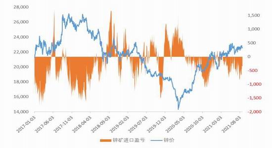 图9:锌精矿进口盈亏