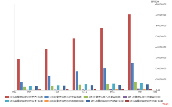 根据国家能源局7月31日公布数据显示,我国光伏新增装机1301万千瓦,同比2020年的1152万千瓦增长了12.9%。据CPIA(中国光伏行业协会)测算数据看,今年上半年新增装机50GW,仅完成10GW左右。今年6月国家能源局下发《关于报送整县(市、区)屋顶分布式光伏开发试点方案的通知》,BIPV(光伏建筑一体化)2020年的装机容量709MW,光大证券表示未来15年,建筑一体化装机容量将从0.8GW上升到82.7GW,年均复合增长率81.59%。总体看,光伏产业中长期潜力巨大。