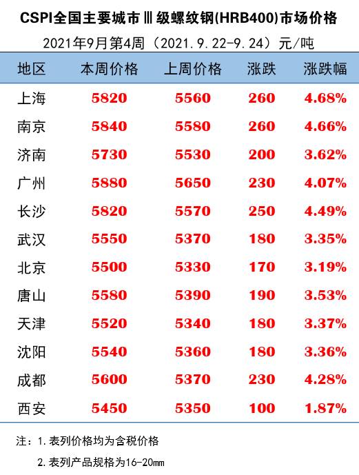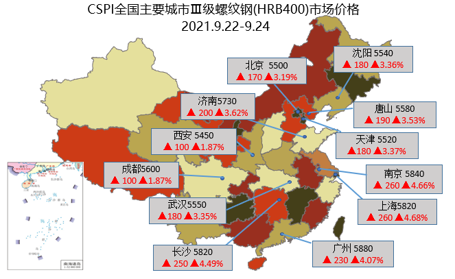 9月22日-9月24日主要城市Ⅲ级螺纹钢市场价格