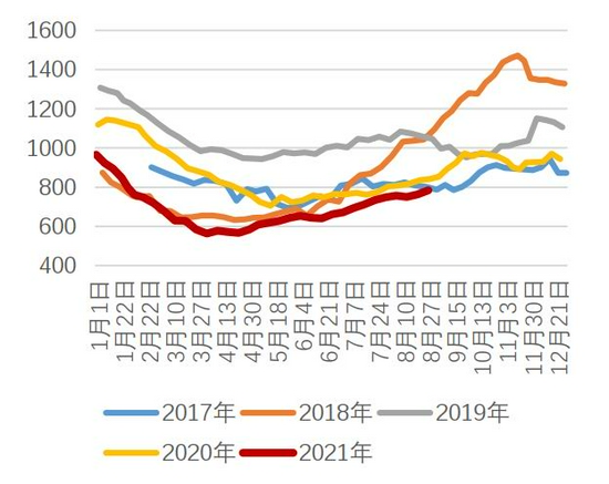 库存方面,截至8月27日,无锡、佛山不锈钢库存总量64.3万吨,月环比增加约5.6万吨,或9.6%,年同比增加11.4%。其中,佛山库存20.4万吨,月环比增加约4.3万吨,或26.7%,年同比增加6.2%;无锡库存约44万吨,月环比增加约1.3万吨,或3.1%,年同比增加14.2%。月内佛山无锡两地库存出现回升,侧面反应下游需求疲软,成为短期不锈钢价主要利空因素。