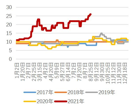 镍矿海运费方面,疫情防控下船舶压港严重,加之三季度海运旺季,运力紧张海运费持续上涨。8月菲律宾苏里高-连云港海运费从7月30日的22美元/湿吨上调至26美元/湿吨。